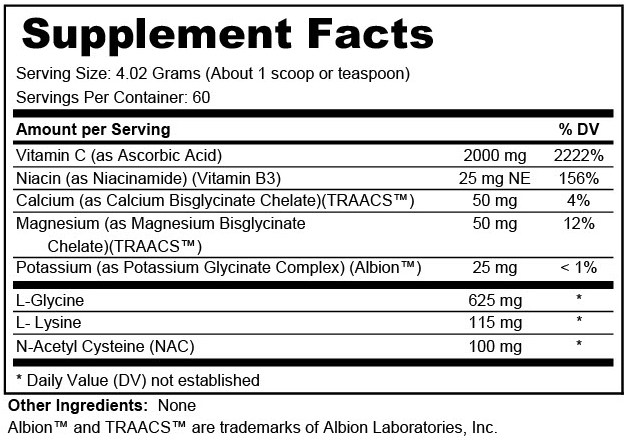 A high-potency concentrated multi-nutrient powder designed to support the adrenal and energy systems, connective tissues, healing, and a healthy allergy response. This formula is easy to take and contains NO additives, sugar, or colorings. It includes vitamin C as well as other nutrients such as glycine, niacinamide, magnesium, calcium, potassium, lysine, and N-acetyl cystine (NAC). Excellent for children and the elderly who have difficulty swallowing pills. ‡